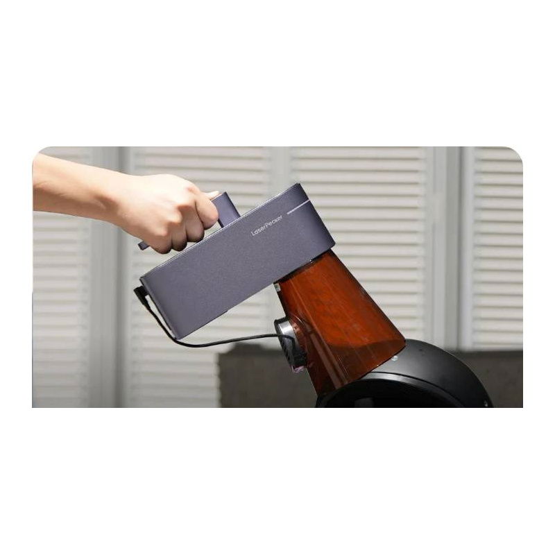 The LP4's design was developed with portability and versatility in mind. The total weight of the set is just 4.23 kg , making it easy to move and use both in stationary and handheld mode – with the ability to work at any angle . Thanks to the built-in touchscreen and the LaserPecker Design Space app (compatible with Android, iOS, Windows, and macOS), operation is quick and intuitive – even for beginners. Support for LightBurn software is an additional advantage. which opens up access to more advanced design features.