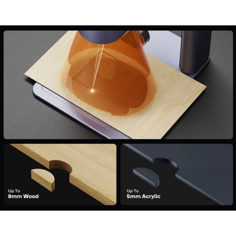 | Cutting depth | up to 8 mm (plywood), up to 5 mm (black acrylic) |