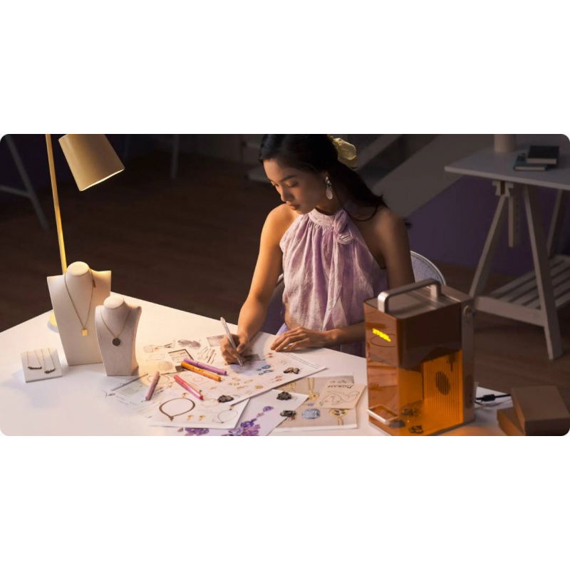 The engraving machine works with xTool Studio software , available for Windows and macOS, integrating design, parameter settings, and device control in a single environment. Supported file formats include SVG, DXF, JPG, PNG, and BMP , and communication is via Wi-Fi or USB . The device is compatible with F1 series accessories , including the workspace extension, RA2 Pro and RA3 rotary attachments, a foot pedal, and an air purifier. The design, with a radiation shield and built-in ventilation system, increases safety and comfort. Its compact dimensions of 175 mm x 237 mm x 334 mm and a weight of 4.6 kg , facilitate transport and mobile operation during trade shows and events.