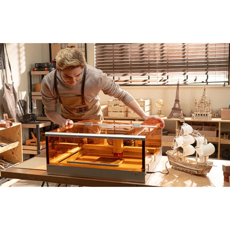 The TOOCAA L2 is a modern laser plotter that combines high-power 20W laser technology with a functional housing. A large work area of 415 x 395 mm allows for medium- and large-scale projects, while an engraving speed of up to 400 mm/s ensures efficient work. The enclosed design with transparent acrylic panels effectively blocks laser radiation and allows for process control . A stable aluminum frame and enclosed guides ensure high accuracy and long-lasting operation. The plotter supports popular TOOCAA Studio, LightBurn, and LaserGRBL software, allowing for easy integration into existing design environments. A USB Type-C interface and TF card support allow for convenient project transfer. Built-in safety systems, such as flame detection, a tilt sensor, and a cover lock , make the TOOCAA L2 ideal for both hobbyist and professional workshops. The Advanced kit includes additional accessories such as Air Assist, camera, honeycomb panel and rotating module , which significantly expand the application possibilities.
