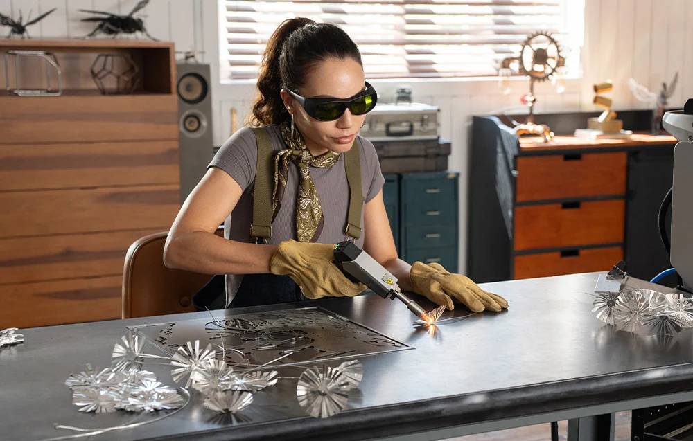 The xTool MetalFab 1200 W laser welder offers three advanced operating modes: continuous, spot, and pulse welding . Each is designed to meet different user needs, from structural welds to delicate thin-wall connections . Continuous mode is ideal for long connections and structural welds, spot mode ensures aesthetics and precision on small details, and pulse mode reduces heat input and distortion. Intuitive configuration of parameters such as power, frequency, and pulse length allows you to customize the device to specific materials and thicknesses.