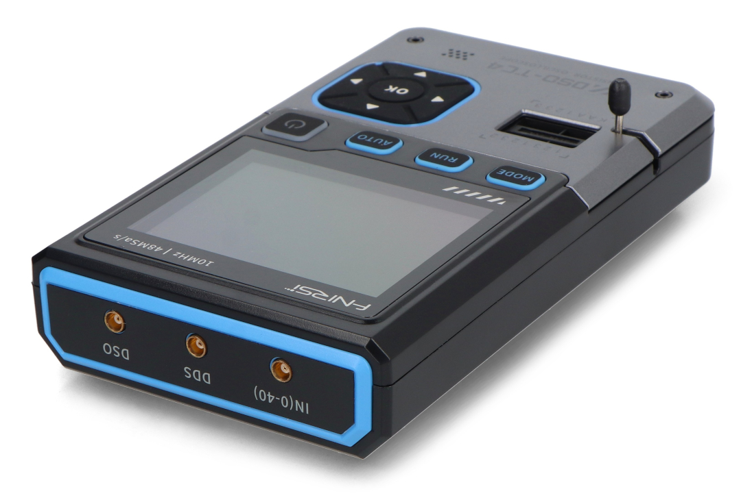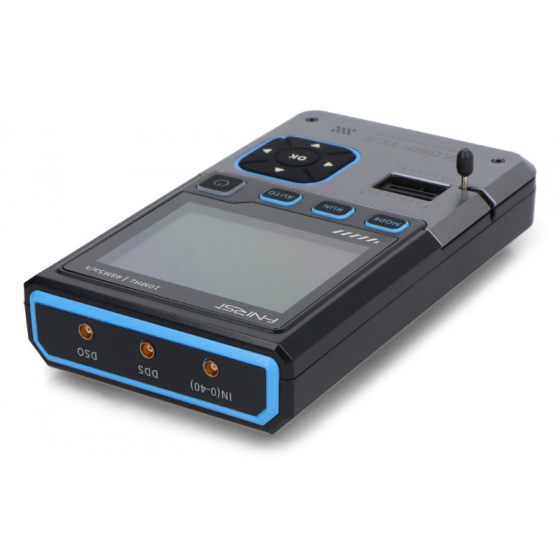 The FNIRSI DSO-TC4 is a compact measurement tool designed for electronics technicians, service technicians, and system diagnosticians. The device integrates a digital oscilloscope , component tester , and signal generator , allowing for a wide range of measurement and control tasks without the need for additional equipment. The oscilloscope offers a 10 MHz bandwidth and a 48 MSa/s sampling rate , enabling real-time signal analysis. The signal generator supports 13 waveform types and allows for adjustable output parameters within a frequency range of 0 kHz to 50 kHz . A built-in 1500 mAh battery and USB Type-C charging ensure portability and convenience for field work.