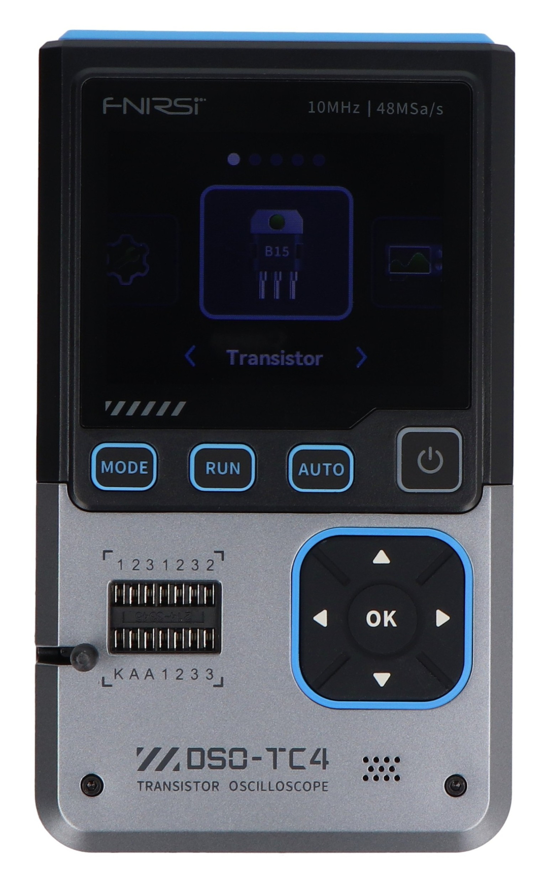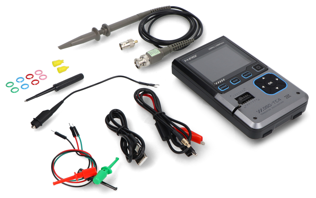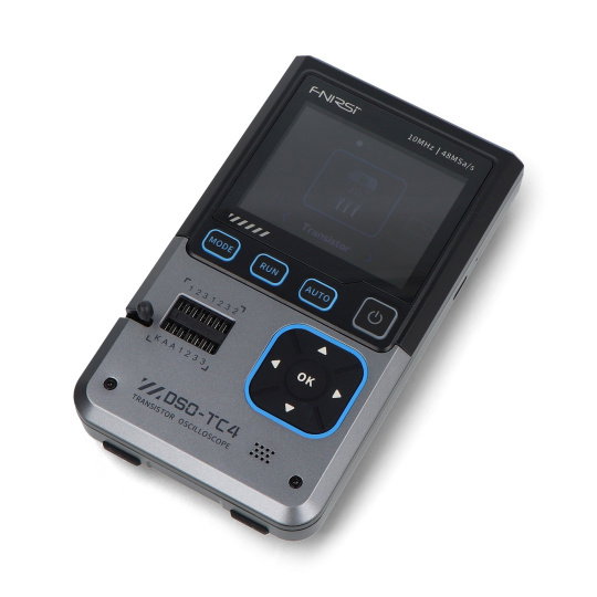 In oscilloscope mode, the FNIRSI DSO-TC4 enables the analysis of AC/DC coupled signals and the rapid capture of waveforms using auto, normal, and single-shot triggering modes. The device can measure values such as max, min, average, RMS, Vpp, frequency, period, and duty cycle . The HOLD function makes it easy to freeze a waveform and analyze the results. The integrated component tester automatically recognizes and measures the parameters of passive and semiconductor components such as diodes, Zener diodes, transistors, MOSFETs, JFETs, IGBTs, SCRs, resistors, capacitors, and inductors. The signal generator allows you to simulate circuit operating conditions, simplifying testing of inputs, filters, and audio and control paths.