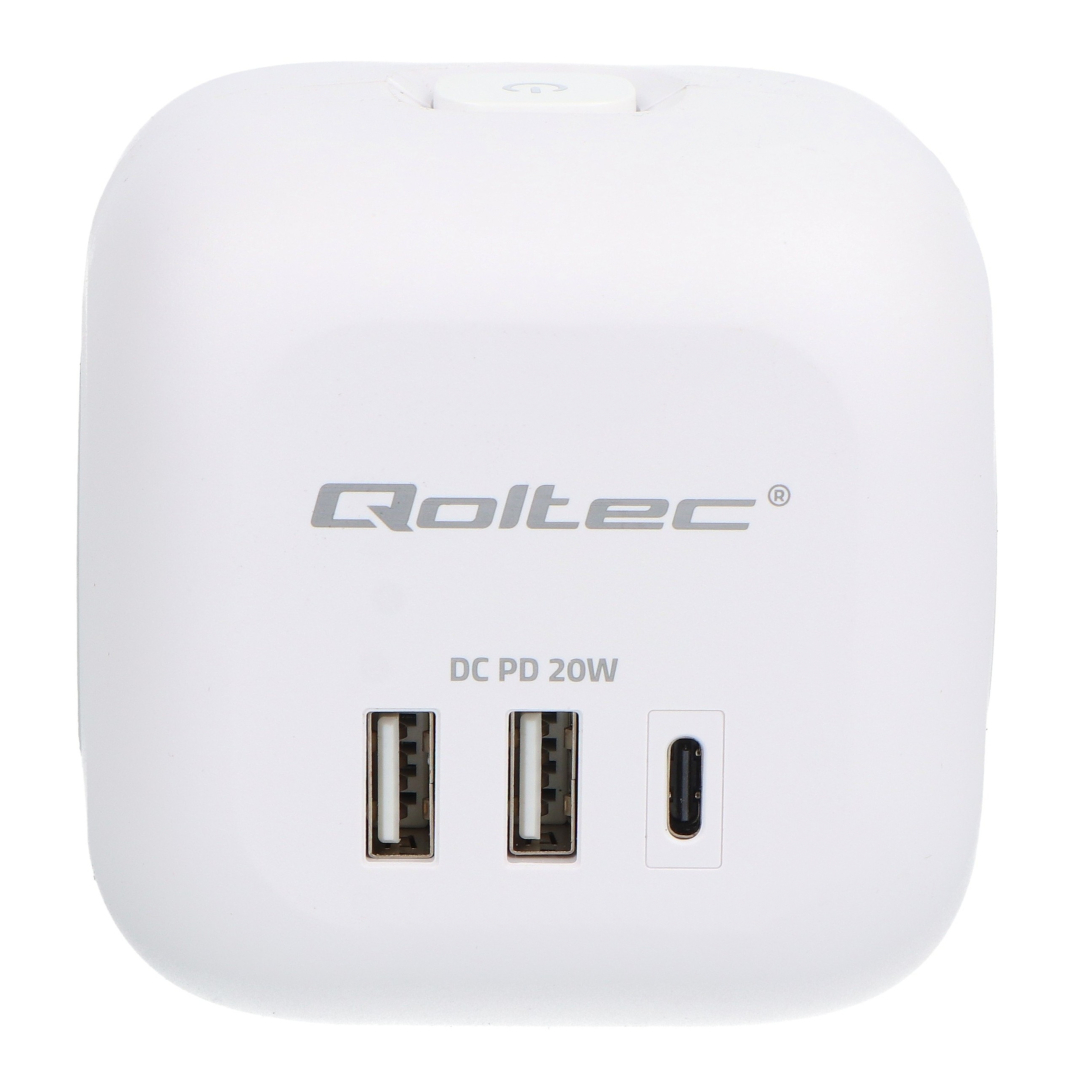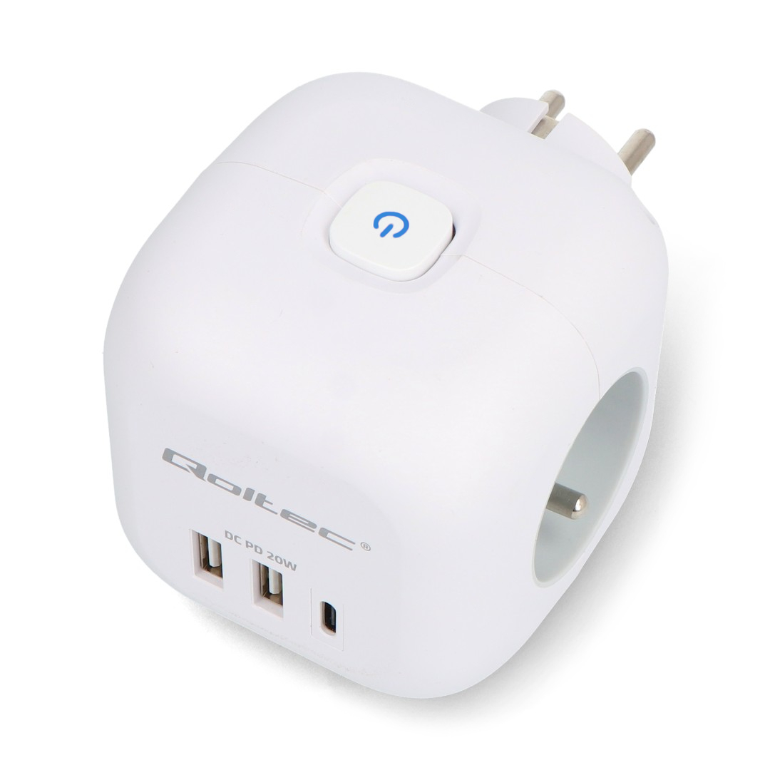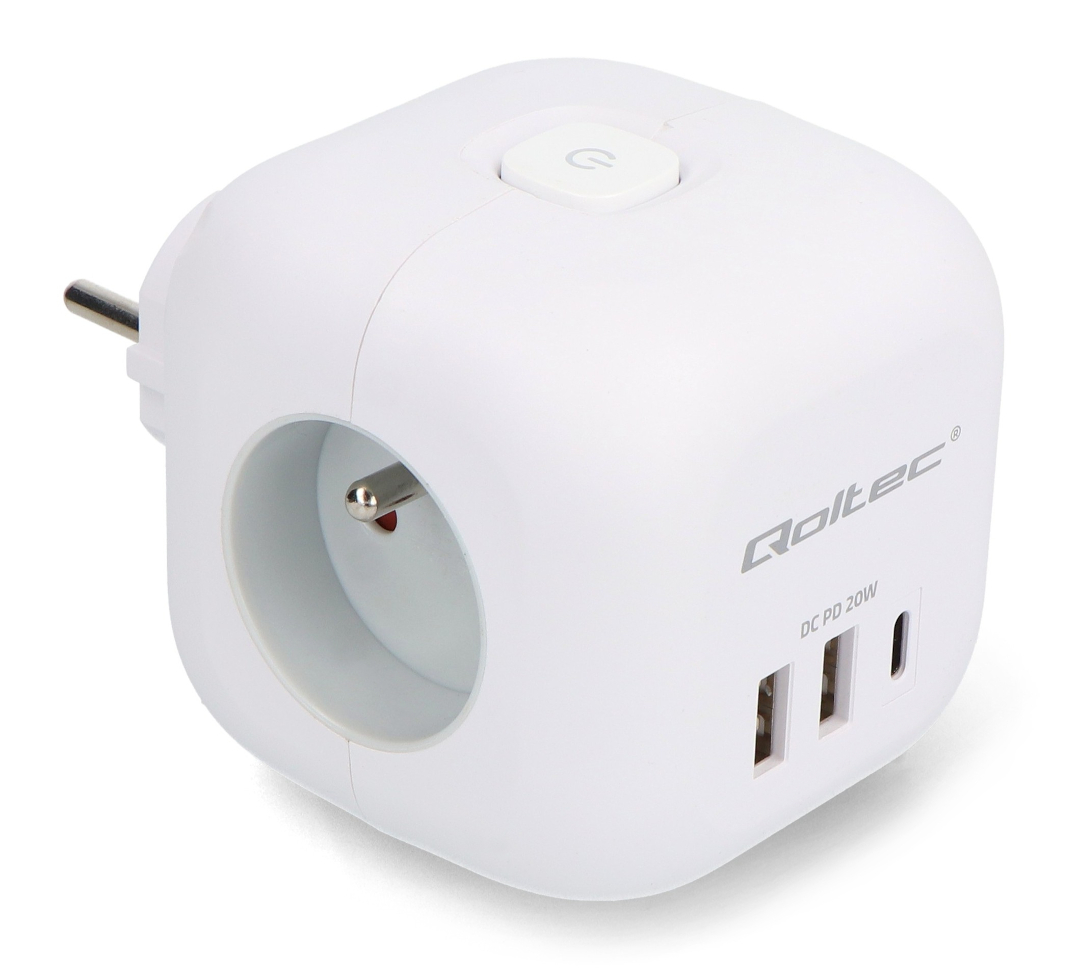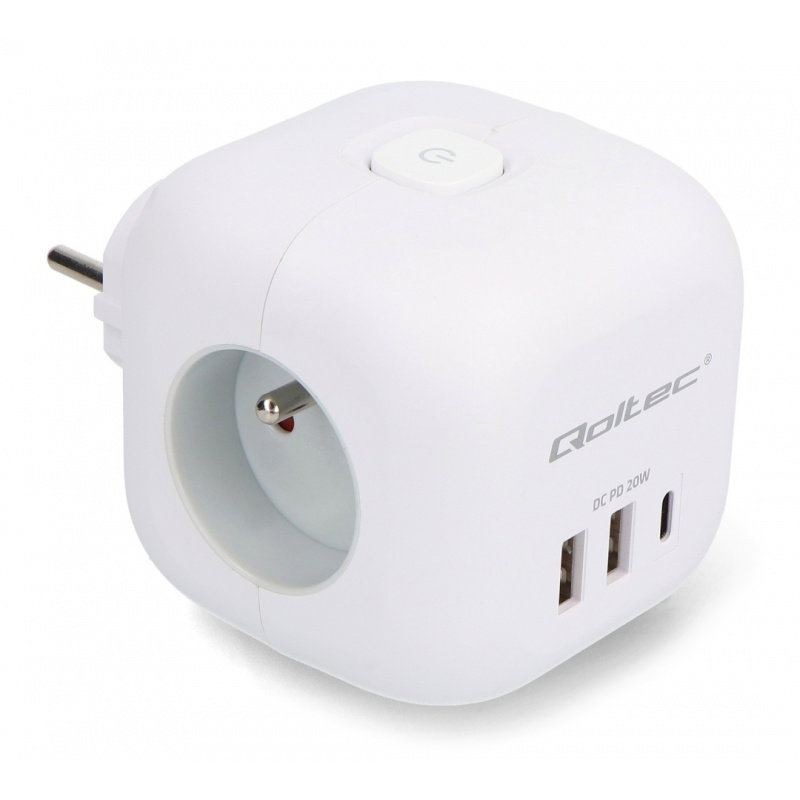Product description: 6-in-1 power cube - 2x USB type A and 1x USB type C - with illuminated switch - Qoltec 52548