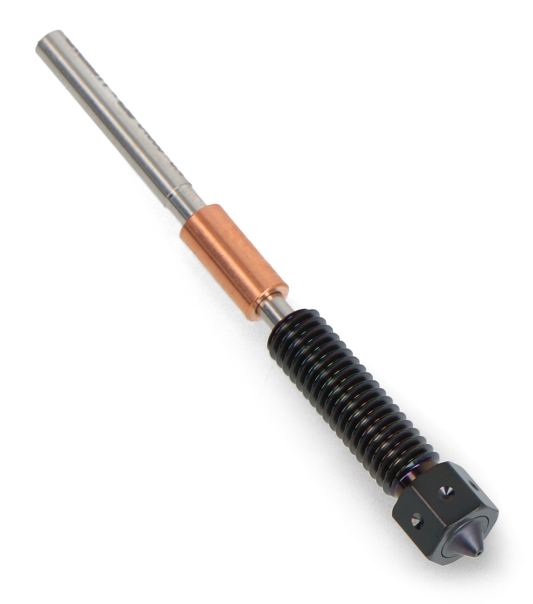 The Genuine E3D Obxidian High Flow nozzle is an excellent choice for any 3D printer user looking to maximize their printer's performance . Thanks to its innovative multi-channel design, which divides filament flow into four separate channels, the nozzle delivers faster material flow while maintaining high precision and print quality . The E3DLC coating and hardened steel guarantee exceptional wear resistance , making this nozzle indispensable for working with more demanding materials, such as carbon fiber-reinforced filaments. Additionally, the use of a titanium-core thermal pipe allows for better temperature control, preventing overheating and ensuring a stable printing process . Choosing this nozzle offers greater versatility and efficiency, saving time and achieving better results. Its quick change in less than 5 minutes provides convenience and minimizes downtime.