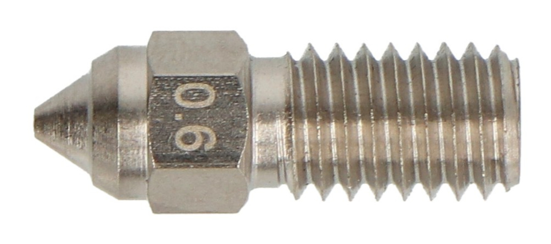 - 0.6mm diameter : optimal balance between print quality and speed