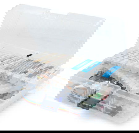 The Arduino Electronics Starter Kit is a complete set that's perfect for introducing you to the Arduino environment. Using it, you can expand your knowledge of the environment and create numerous electronic circuits.