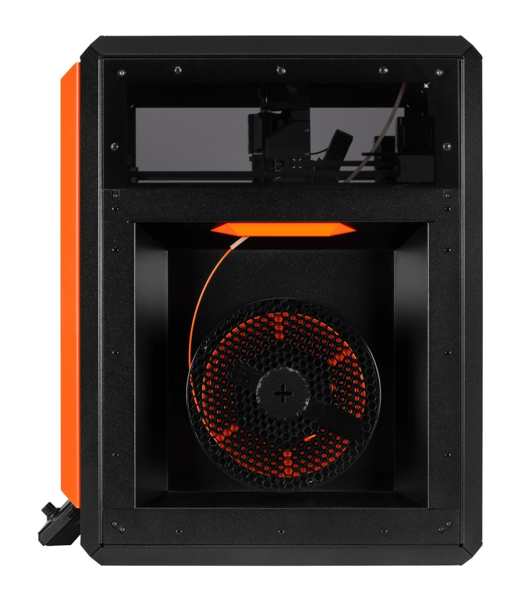 The CORE One+ takes up 50% less space than the MK4S in its enclosure , while offering a 30% larger build volume of 250 x 220 x 270 mm . Thanks to its clever design, the printer is ideal for home workshops, offices, and professional print farms. The intelligent enclosure design allows for easy access to the interior and convenient filament feeding, significantly streamlining workflows.