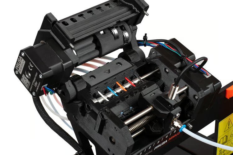 The Original Prusa MMU3 Enclosed module is an innovative solution enabling 3D printing using up to five filaments in a single print . Thanks to optimized firmware and bidirectional printer communication, the MMU3 offers reliable, fast, and convenient multi-color printing from a single nozzle. The Enclosed version is specifically tuned to maintain the CORE One's enclosed chamber , ensuring consistent temperature conditions inside the printer. The kit includes everything needed to integrate the MMU3 module with the printer, including a top cover with a PTFE tube feedthrough.