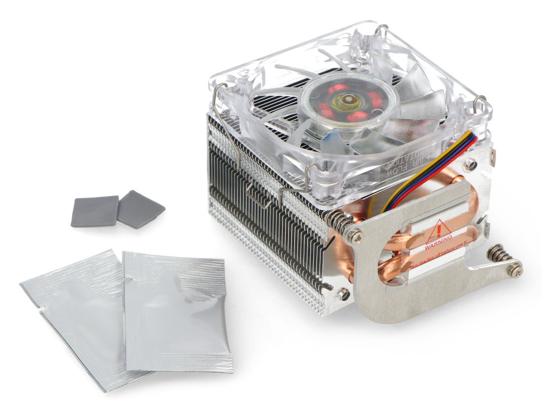 Argon THRML is a cooling system for the Raspberry Pi 5 minicomputer , based on a 60 mm diameter fan , which is controlled using PWM pulse width modulation and a radiator with a copper pipe for heat dissipation. The silver fan provides effective cooling of the device and is easy to install. The set also includes thermal paste and a thermal pad .