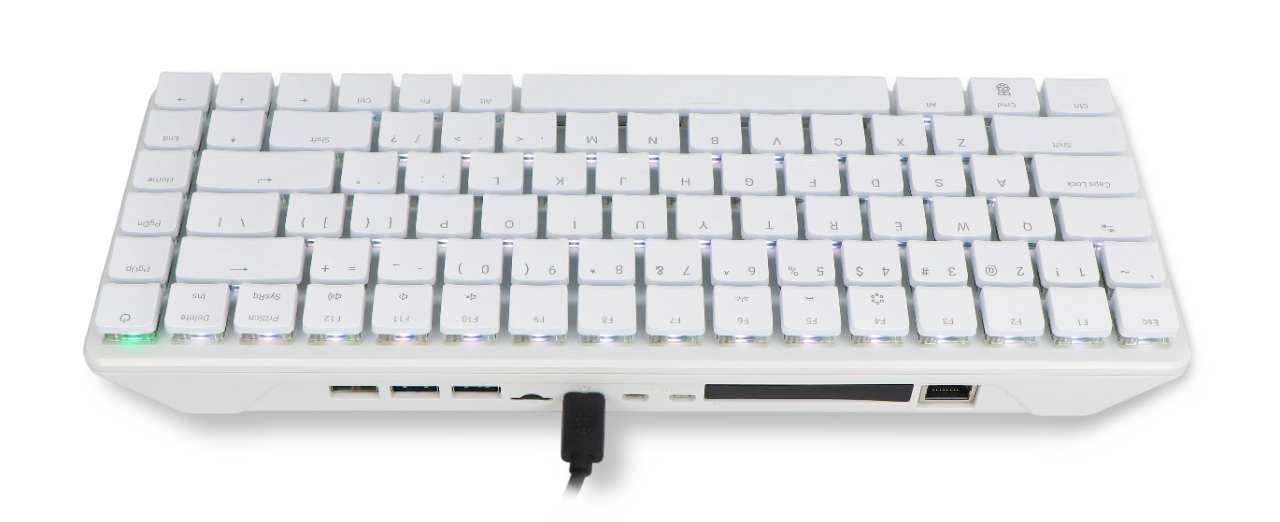 The Raspberry Pi 500+ features a mechanical keyboard that provides precise and comfortable operation, even after extended use. Each key features individually addressable RGB backlighting , allowing you to customize the device's appearance to your preferences. Interchangeable keycaps further enhance durability and allow you to personalize your keyboard layout.