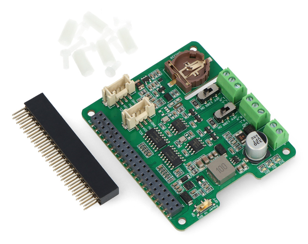 Seeedstudio shield for Raspberry Pi minicomputers. It supports the CAN FD interface with a transmission speed of up to 8 Mb/s , it is a faster and more efficient version of the traditional CAN interface. The shield is based on the MCP2518FD controller and the MCP2558FD transceiver. The device uses the SPI interface to communicate with the minicomputer. The shield can be powered using the GPIO pins of the Raspberry Pi or using screw connectors using a DC voltage ranging from 12 V to 24 V. The board also has Grove connectors, 120 Ω resistors and switches to control their operation.