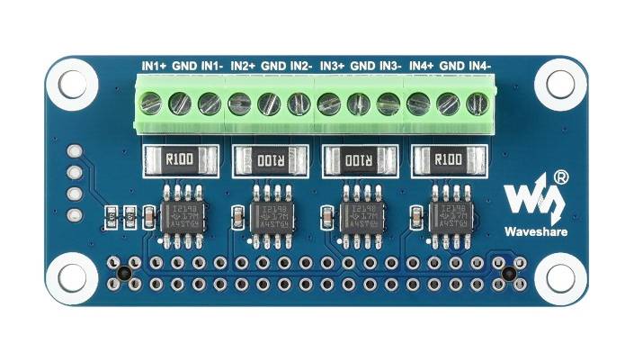 Product description: 4-channel current, voltage and power monitoring HAT for Raspberry Pi - I2C / SMBus - Waveshare 17539