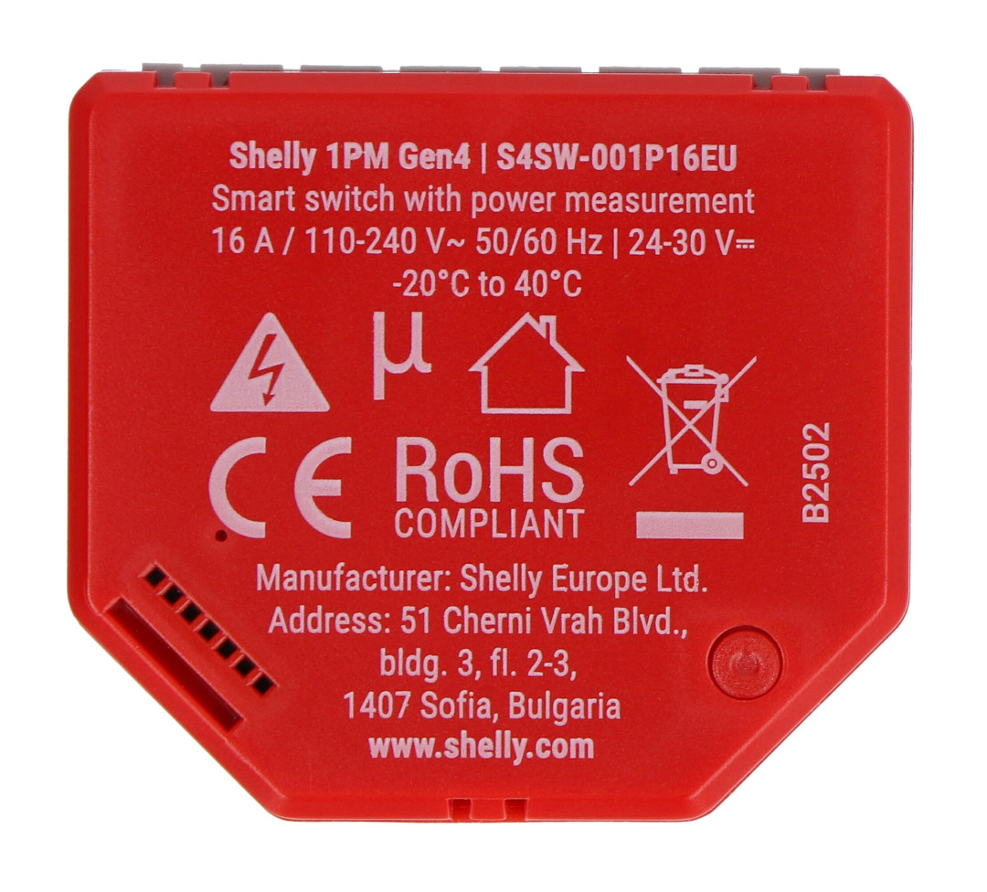 Shelly 1PM Gen4 is a modern smart home module that combines the functions of a relay and an electricity meter . Thanks to the support of many communication protocols , such as WiFi, ZigBee, Bluetooth and Matter, it provides wide compatibility with various home automation systems. Shelly 1PM Gen4 supports voltages ranging from 110 V to 240 V AC or from 24 V to 30 V DC. Its compact dimensions allow for installation in standard installation boxes, making it an ideal solution for modernizing existing electrical installations.