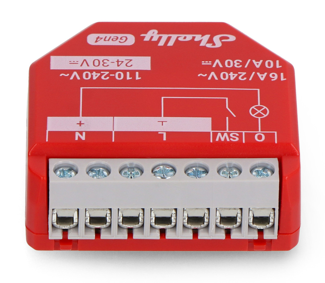 Product description: Shelly 1PM Gen4 - relay AC 110 - 240 V, DC 24 - 30 V, WiFi / Bluetooth / ZigBee / Matter 16 A - energy measurement - Android / iOS application