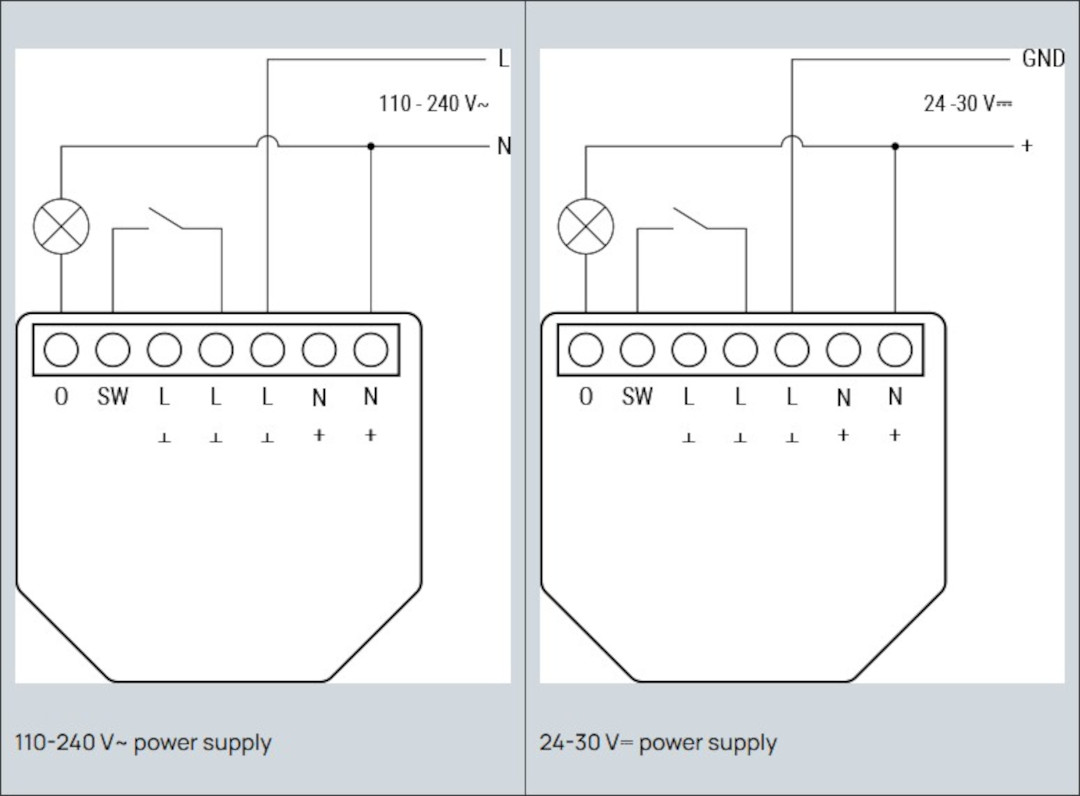 - SW - control input, enabling the connection of a button or wall switch