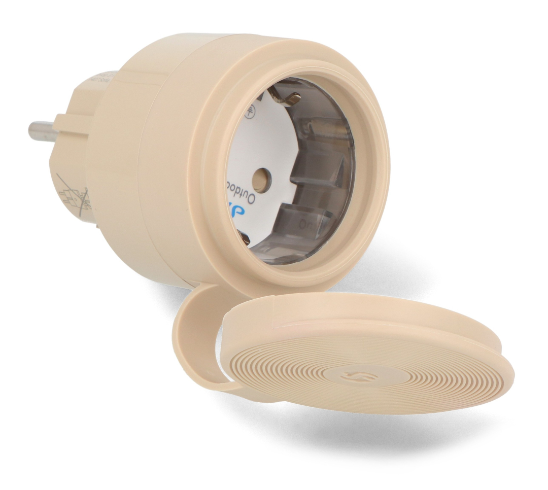 Product description: Shelly Outdoor Plug S Gen3 - smart outdoor socket WiFi / Bluetooth / Matter with energy measurement - mocha