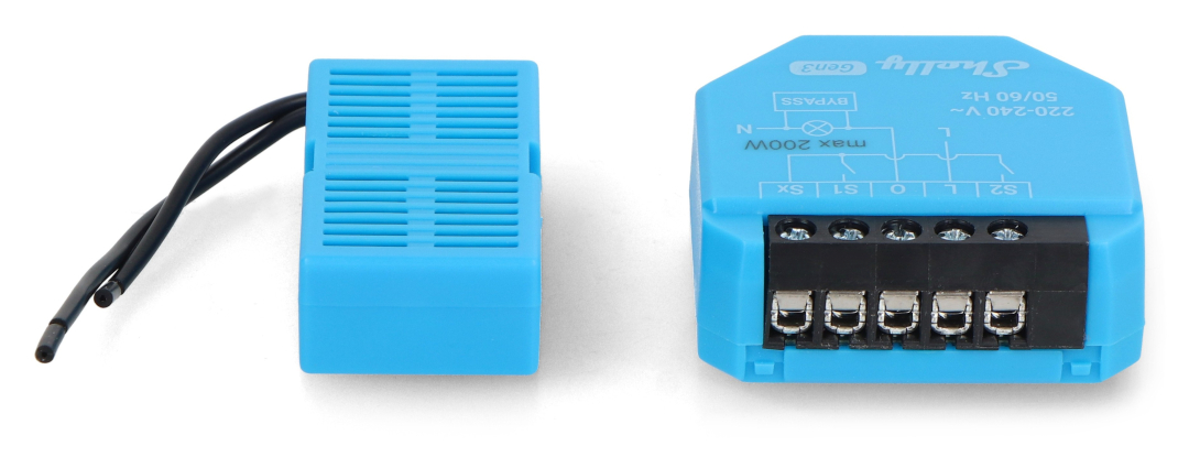 With the Shelly 1L Gen3, connecting a neutral wire (N) is not necessary. This makes it ideal for older electrical installations where such a wire may not be available. This is a great solution for those who want to avoid costly rewiring while still being able to implement a Smart Home system in a very affordable way. For low-power devices, such as LED lighting , the manufacturer provides the option of using an additional bypass module , which stabilizes and eliminates issues such as flickering or glowing after being turned off. Bypass support increases the device's compatibility with various types of light sources and ensures reliable operation in any installation.