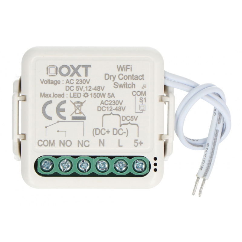 Product description: Tuya - single channel volt-free mini relay - WiFi - Android/iOS app - OXT T210DC