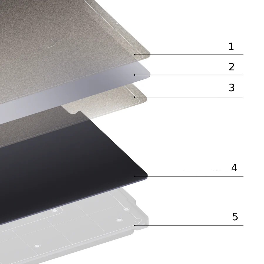 Both sides of the plate have a textured surface, ensuring high first-layer adhesion even for large, complex, and functional models. This design minimizes the risk of prints peeling and significantly improves their quality. The textured PEI plate facilitates working with filaments with higher shrinkage, reduces warping, and eliminates the need for additional adhesives. To maintain the longevity of the surface, it is recommended to remove the print only after the platform has completely cooled and to exercise caution when using hand tools .