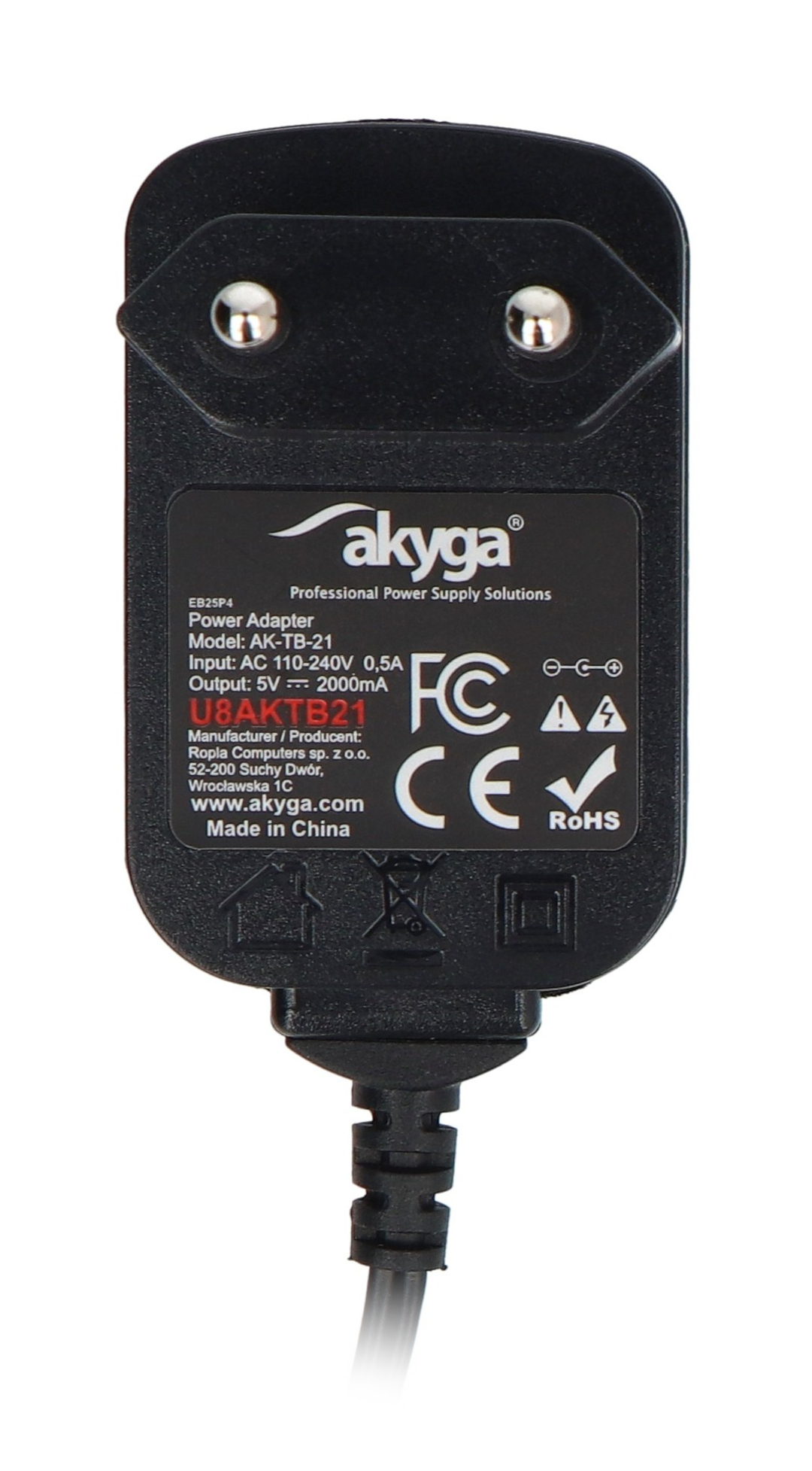 Product description: Akyga AK-TB-21 switching power supply 5 V / 2 A 10 W - DC plug 2.5 / 0.7 mm