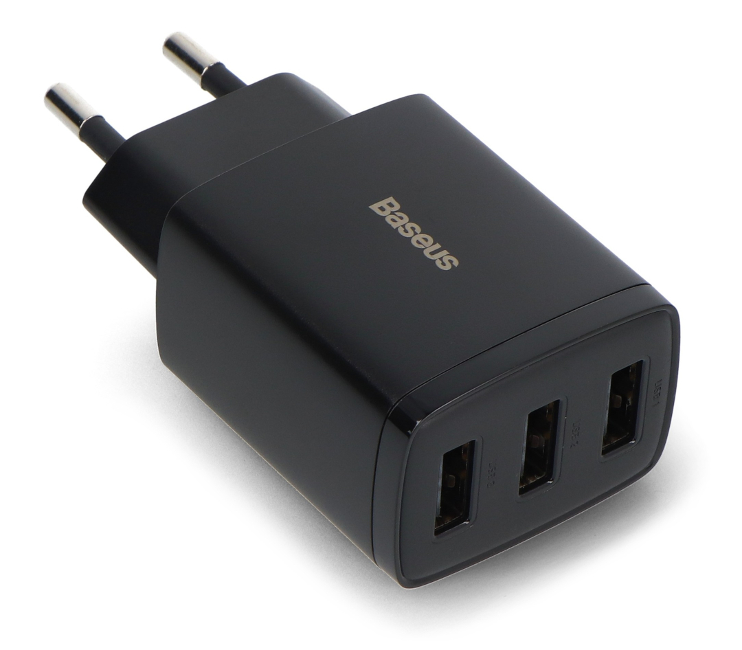 Product description: Baseus Compact Quick Charger 3 x USB-A Power Adapter - 5V / 3.4A 17W - Black