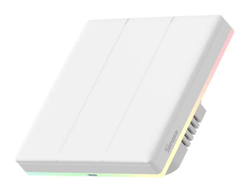 The Sonoff TX T5 3C is a smart 3-channel WiFi wall switch that allows you to conveniently control your lighting. With the eWeLink app, you can manage your lights from anywhere in the world, set schedules, and create automatic scenes. It works with popular voice assistants like Amazon Alexa, Google Home, and Alice , allowing you to control your lights with simple voice commands. The built-in colorful LED backlight with various modes can function as a night light or decorative ambient lighting. The TX T5 3C also offers two-way wireless control , allowing you to control a single lamp from multiple locations without the need for additional wiring.