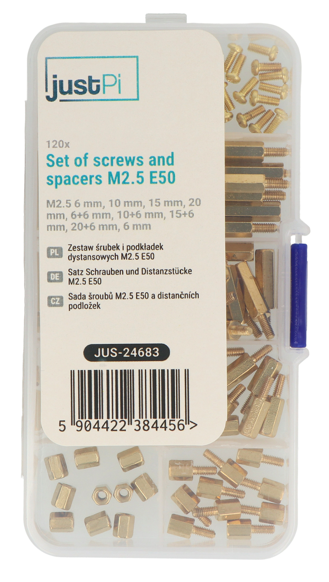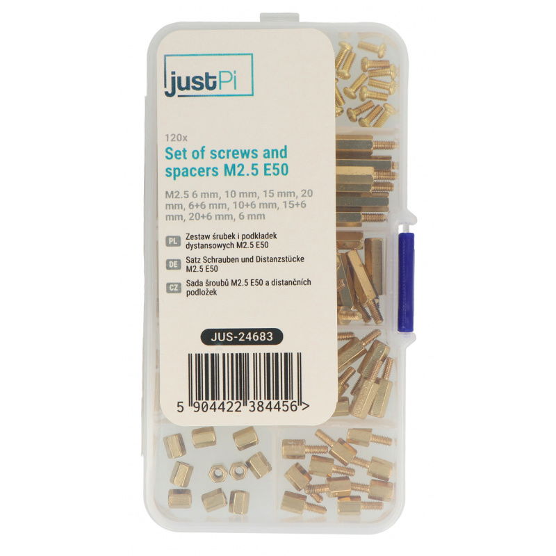 Product description: Set of screws and spacers M2.5 E50 - 120 pcs - justPi