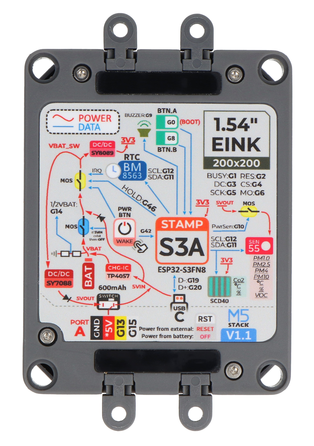 - MCU: StampS3 (ESP32S3FN8, 240 MHz, 2.4 GHz WiFi, 8 MB Flash)