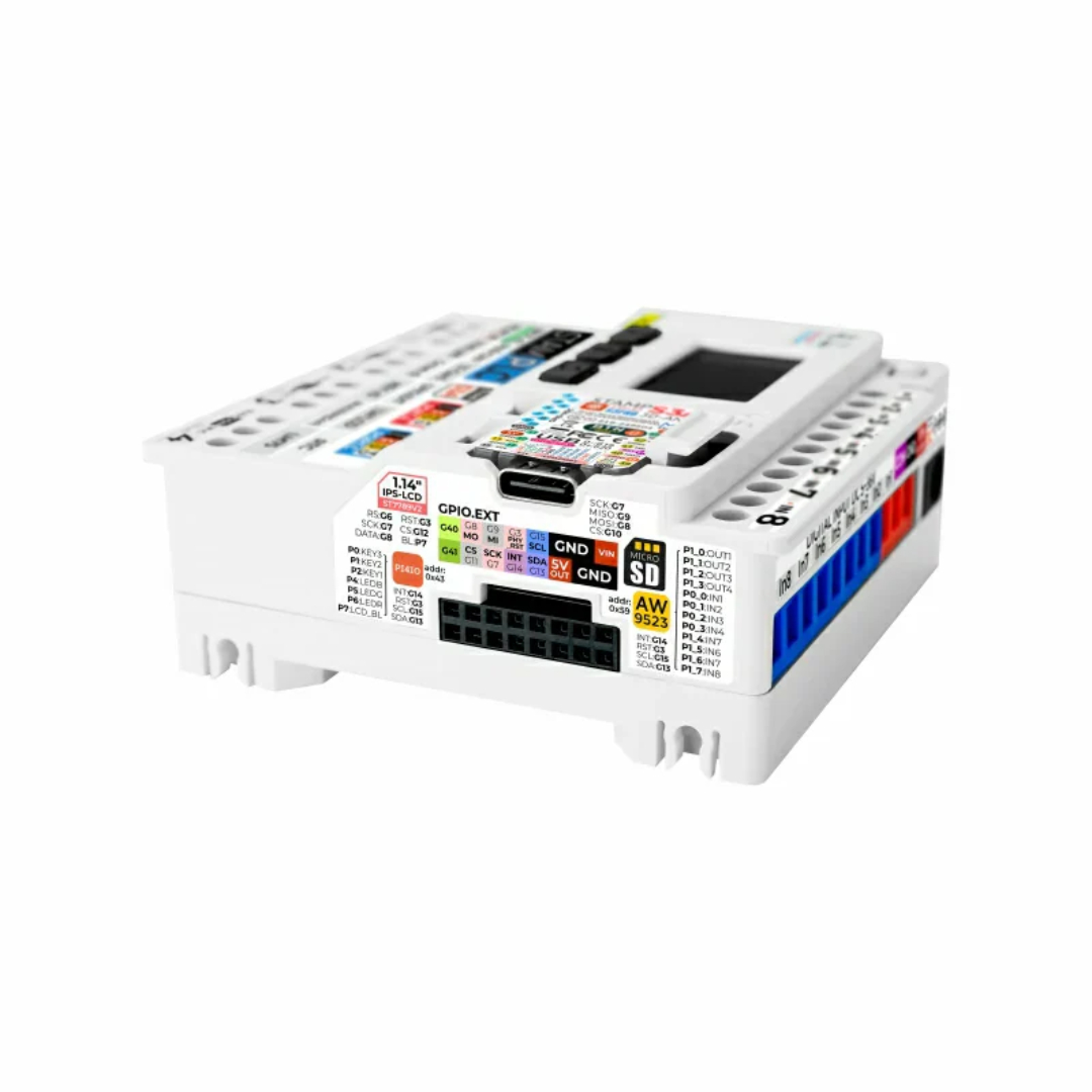 The M5Stamp PLC is an ideal solution for applications in industrial automation, remote monitoring, energy management, and smart manufacturing. Its versatility allows it to be used in distributed control systems, production process management, and real-time monitoring and control systems. It can be integrated with other industrial devices, and its broad compatibility with various interfaces makes it an excellent choice for implementation in complex industrial and IoT applications.