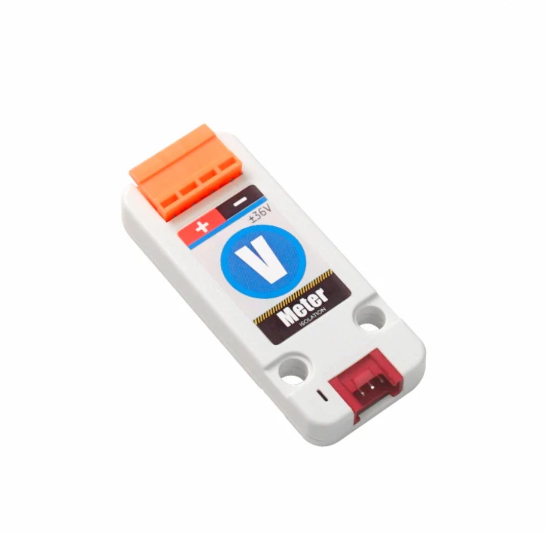 The M5Stack voltmeter is a compact and reliable voltage measurement module with a built-in 16-bit ADS1115 converter communicating via I2C (address 0x49). Thanks to its isolated DC-DC power supply and CA-IS3020S isolator, the module protects against interference and surges that could damage sensitive circuits. Each unit is factory calibrated to an initial accuracy of 0.1% FS ±1 count, ensuring reliable and repeatable results. The module supports auto-ranging and a resolution of 1 mV (for voltages ≤ 16 V) or 7.9 mV (for voltages > 16 V). Thanks to its compact size, compatibility with Arduino and UIFlow platforms, and compatibility with LEGO systems , the module is ideal for prototyping, electronics testing, and voltage monitoring in educational and professional projects.
