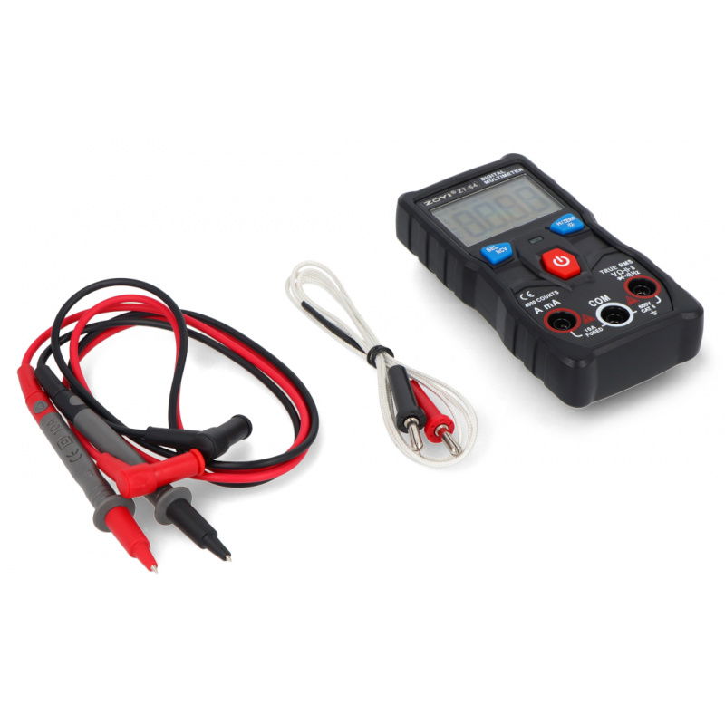 The ZOYI ZT-S4 is a modern digital multimeter that automatically recognizes the measured signal and selects the appropriate range and measurement function, offering exceptionally intuitive operation. The device allows you to measure voltage, current, resistance, capacitance, frequency, and temperature, as well as test diodes and circuit continuity. True RMS technology ensures accurate readings even with distorted signals. Additional features such as NCV (non-contact voltage detection), an LED flashlight , a backlit display , Data Hold , and auto-off enhance comfort and safety. Thanks to its small size and weight, the ZT-S4 is an ideal tool for everyday work at home, in the workshop, or in the field.