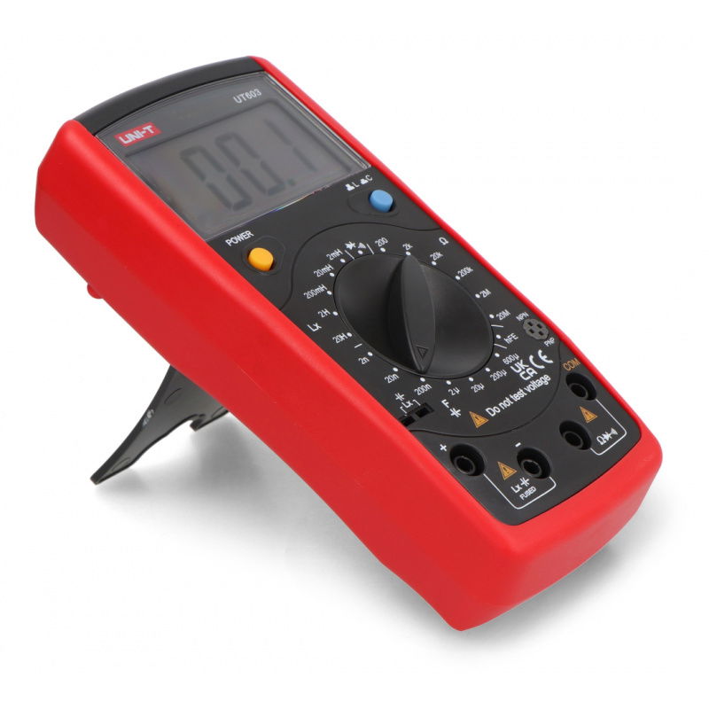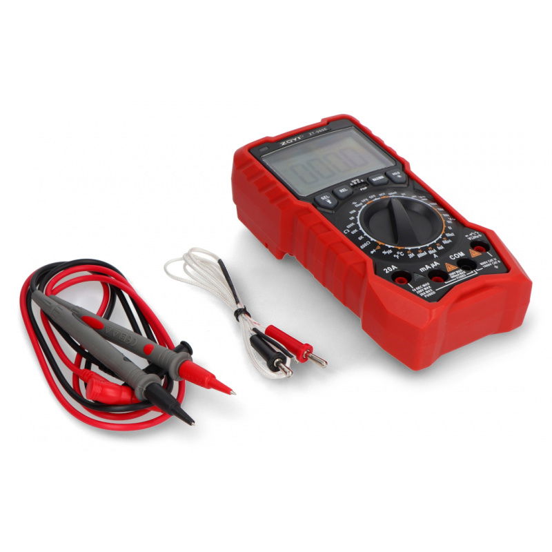 The ZOYI ZT-980 digital multimeter is a versatile, manual-ranging meter equipped with True RMS and a VCF filter, ensuring precise voltage and current measurements, even with distorted signals up to 1 kHz. It provides accurate readings of AC/DC voltage, AC/DC current, resistance, capacitance, frequency, duty cycle, and temperature from -20°C to 1000°C . It supports diode, transistor, and continuity testing . The NCV function allows for non-contact detection of live wires, increasing work safety. A large, backlit LCD display , flashlight, HOLD, MAX/MIN, and REL functions, as well as a fold-out stand and probe holder, make the ZT-980 an exceptionally functional tool for any electronics technician or DIY enthusiast.