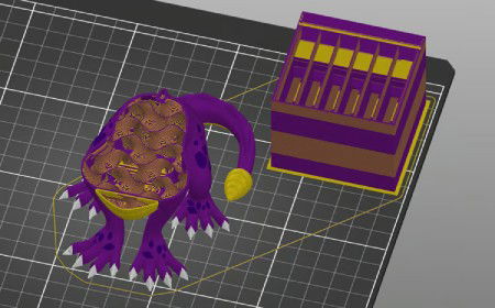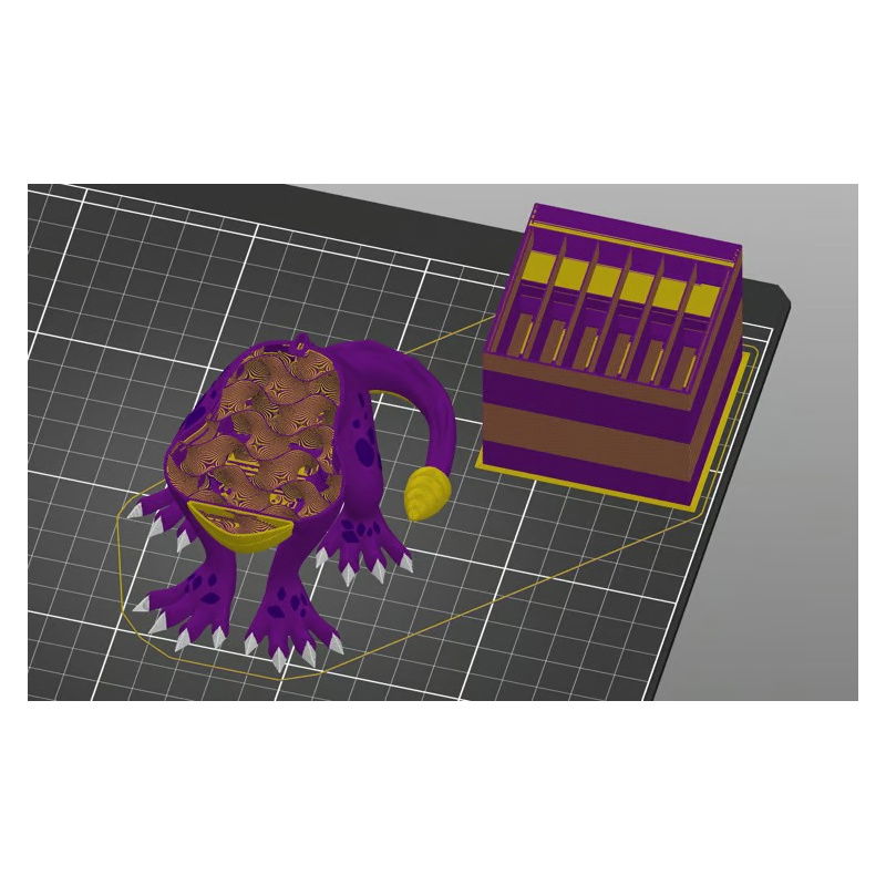 The MMU3 is fully supported by PrusaSlicer, which allows for intuitive color assignment to specific parts of the model. Tools like the brush, smart infill, and paint bucket are available. Wipe functions on the infill and on another model reduce filament waste and optimize material usage.