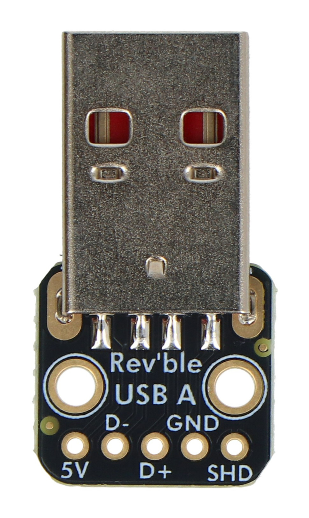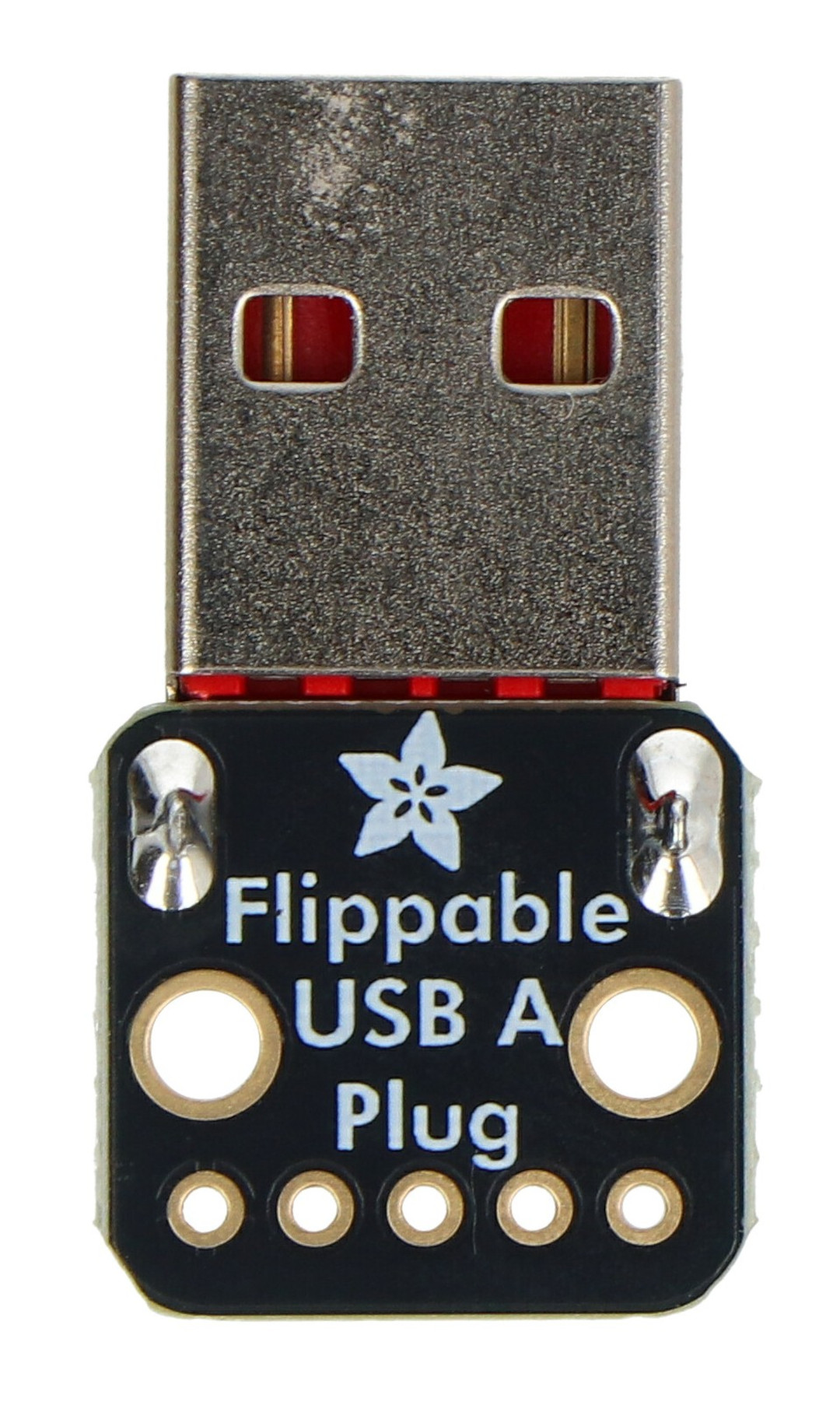 This small module from Adafruit eliminates the common problem of a misplaced USB Type-A cable . Thanks to its special design with a thin center contact, the plug works correctly regardless of orientation . It's ideal for projects where aesthetics, functionality, and a fixed module orientation are important—for example, in devices with LEDs or displays. The module provides all basic USB signal lines: 5V, GND, D+, D- , and an additional ground pin for the case.