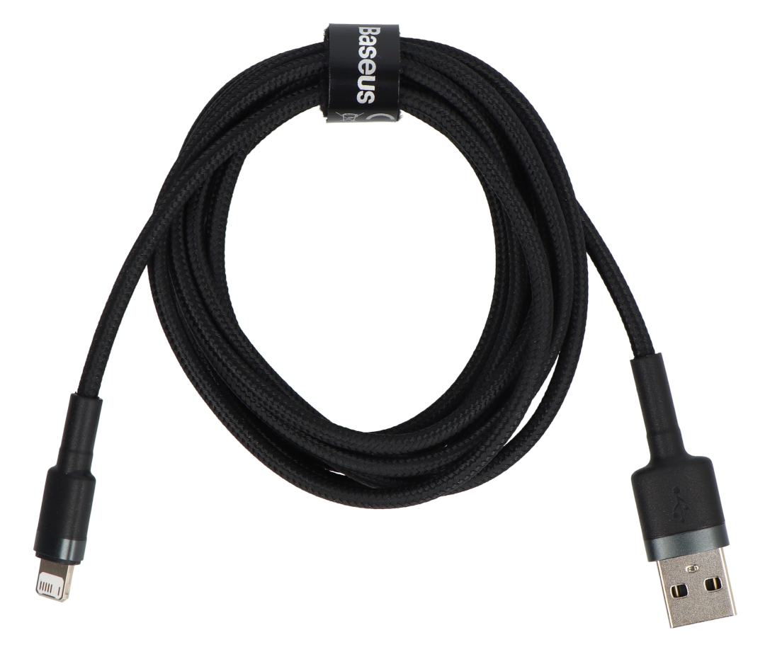 The Baseus Cafule USB Type-A to Lightning cable was designed for Apple device users who need a durable charging and data synchronization accessory. Its 2-meter length provides greater flexibility of use – perfect for home, office, and car use. The cable supports charging at a maximum current of 1.5A and data transmission up to 480 Mb/s , allowing you to not only recharge your device but also quickly transfer files. Nylon braiding, aluminum tips, and a reinforced rubber cable-plug connection increase durability for everyday use and reduce the risk of mechanical damage. A Velcro strap is also included for easy cable storage.