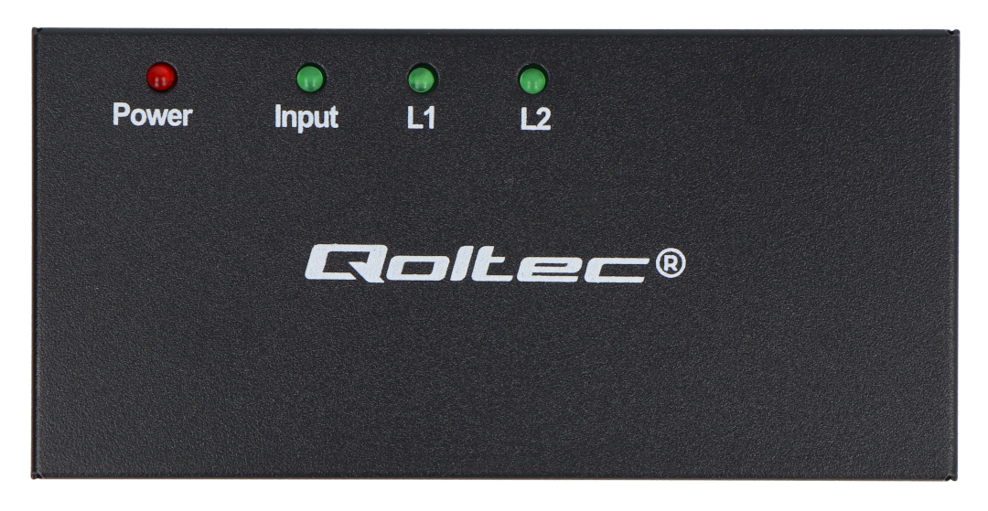 The Qoltec Active HDMI Splitter is a functional device that allows you to send a signal from a single HDMI source to two receivers simultaneously . This model supports 4K/2K resolution at 30 Hz , allowing for detailed image display and excellent color quality. Its active design supports stable signal transmission, making it ideal for both home entertainment and office or presentation use. The device works with a variety of signal sources, such as TVs, computers, laptops, consoles, and projectors. Support for Dolby True HD, DTS-HD, and 8-channel audio formats provides a better multimedia experience. The splitter is equipped with four LEDs to indicate device operation, and the plug-and-play function allows for easy setup.