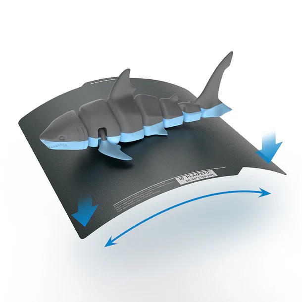Simply bend the surface slightly and the print will come off without any scraping or prying required.