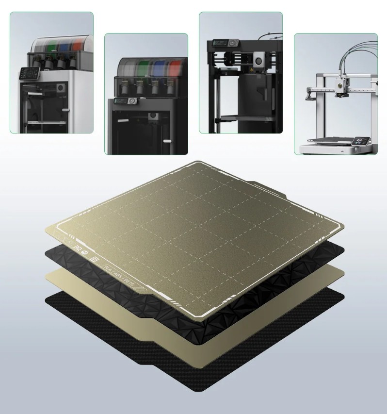 - Supported filaments: PLA, PETG, TPU, ABS, ASA, PVA, PET, PA, PC, Nylon, Nylon-CF