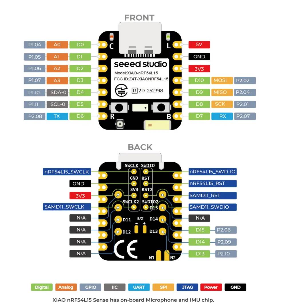The Xiao nRF54L15 Sense is an enhanced version of the classic Xiao nRF54L15 , enhanced with a PDM microphone and a 6-DOF IMU sensor . Based on the Nordic nRF54L15, the board offers high performance, energy efficiency, and the latest wireless technologies, including Bluetooth LE 6.0 with Channel Sounding and support for Matter, Thread, and ZigBee . Its compact size, integrated power management, and battery charging capabilities make it an ideal solution for smart wearables, sensors , and IoT prototyping.