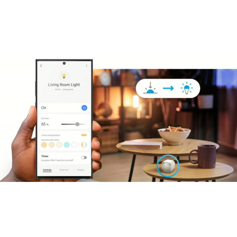 The integrated PIR sensor detects motion within a range of up to 10 meters , enabling automatic control of lighting, heating, or the alarm system. It offers a wide 120° detection angle , allowing for effective monitoring of even large rooms. Its rapid response instantly triggers scenes and automations. Presence detection helps increase building security and reduce energy consumption by turning on devices only when needed.
