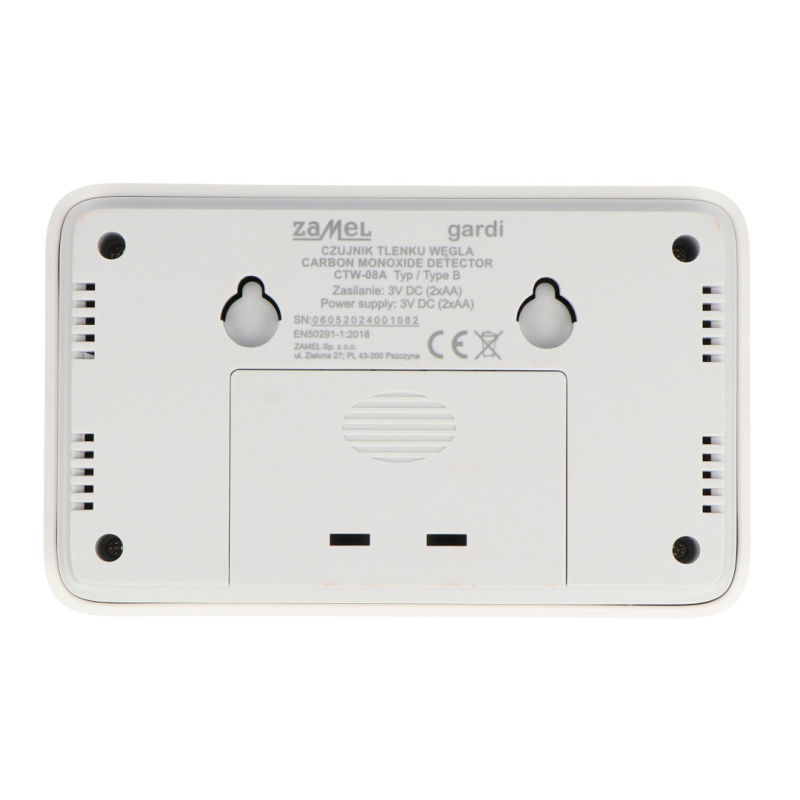 Product description: Battery-powered carbon monoxide detector - Zamel Gardi CTW-08A