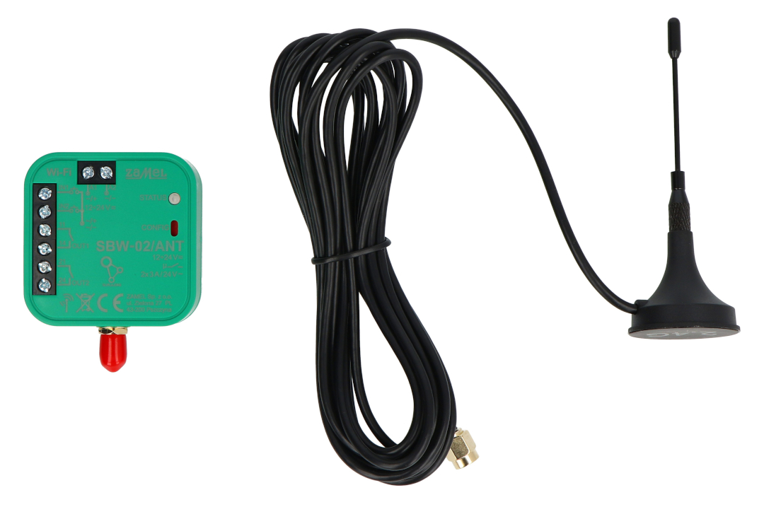 Product description: Zamel Supla SBW-02/ANT - 2-channel bi-directional 12V/24V WiFi gate controller with external antenna - Android/iOS application