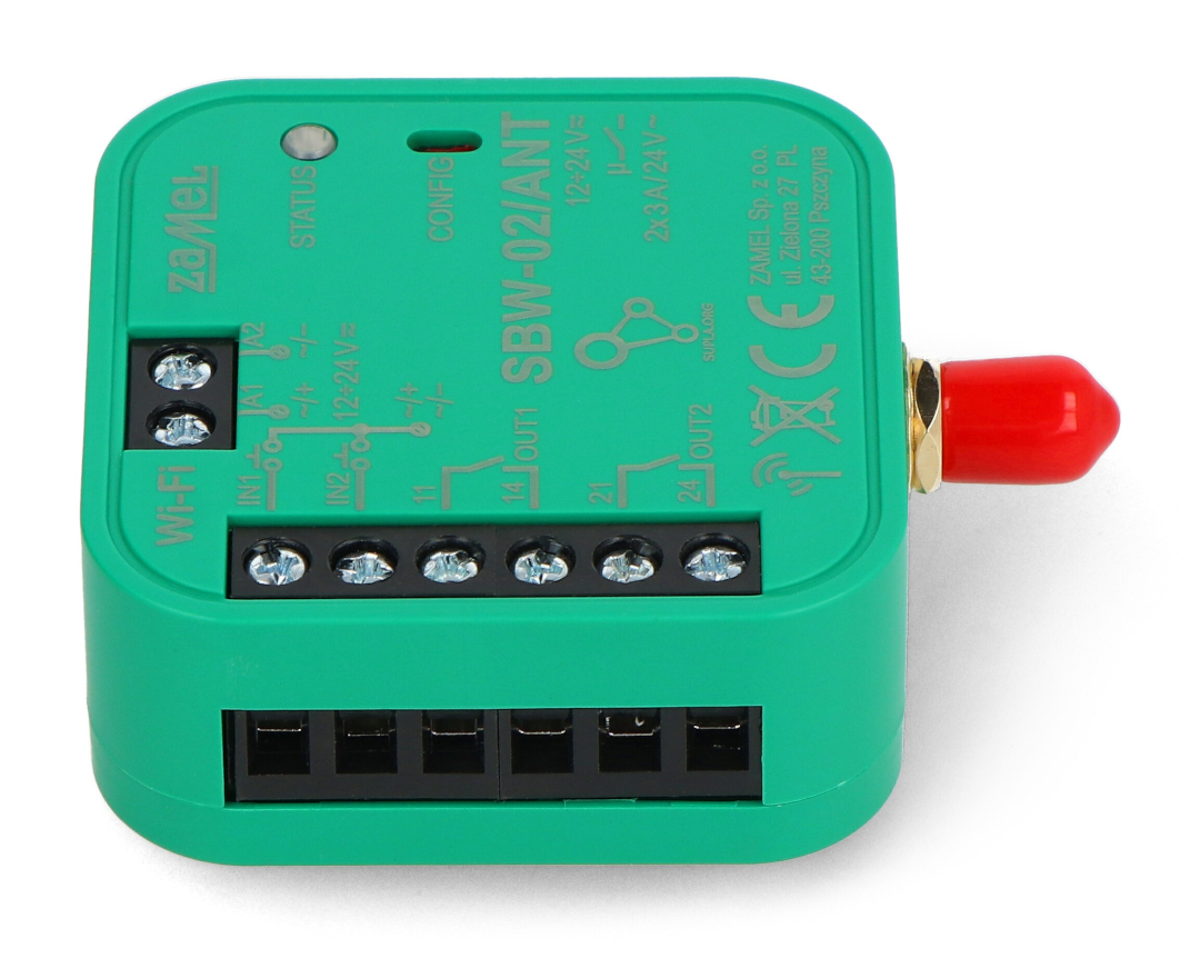 Zamel Supla SBW-02/ANT - 2-channel bi-directional 12V/24V WiFi gate controller with external antenna - Android/iOS application.