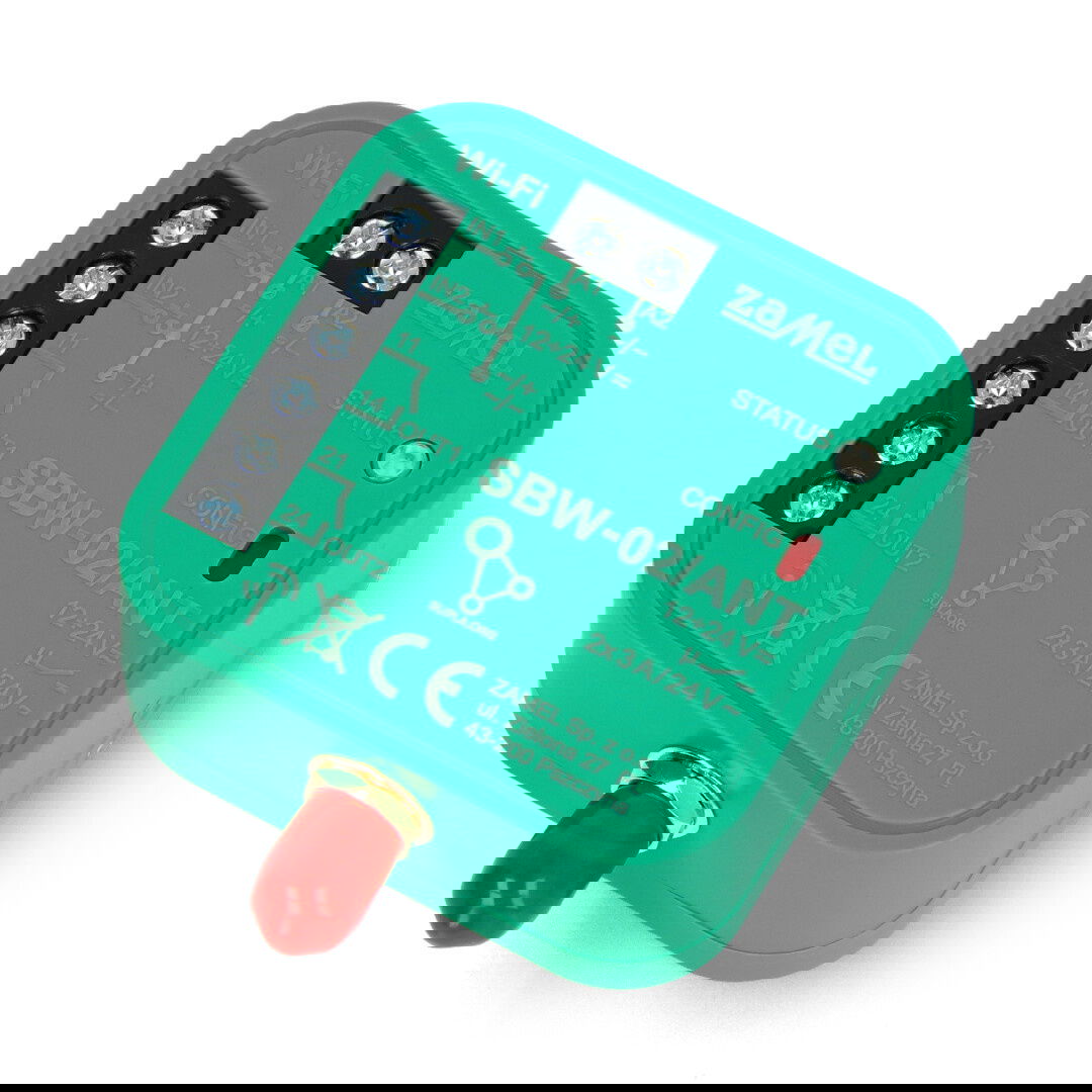The SBW-02/ANT gate controller fromZamel Supla is an advanced gate automation solution that connects to the Supla mobile app , enabling full control of your gate or wicket from anywhere. The device is compatible with any gate drive and can be mounted directly to the drive or in a 60mm diameter junction box. An external antenna is also included, providing improved signal range for devices located far from the router. With a universal power supply from 12V to 24V AC/DC , the SBW-02 is versatile and easy to integrate with various systems. The controller is equipped with two independent channels , allowing you to control two devices (e.g., a gate and a wicket) or two gates. By connecting signals from limit switches , you can monitor the gate's opening and closing status.