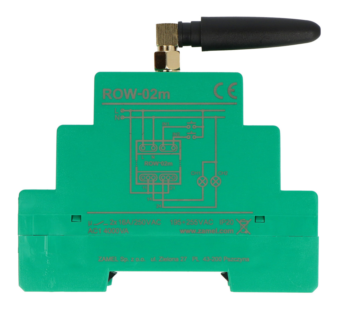 Product description: Zamel Supla ROW-02M - 2-channel WiFi relay 230 V 16 A - Android / iOS application